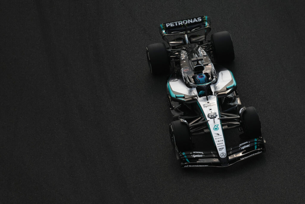 至於在排位賽的表現,Russell在Q2一度展示出挑戰頭3名的速度,但到了Q3就無以為繼,他在Q3的兩次跑圈都受到後輪打滑的影響,包括在T14需要「反軚」救車,差一點撞上護欄,以及在最後一個彎剷上路緣石。結果Russell取得第4名,落後頭位Verstappen 0.438秒,隊友Kimi Antonelli則在Q2被淘汰得第14名。