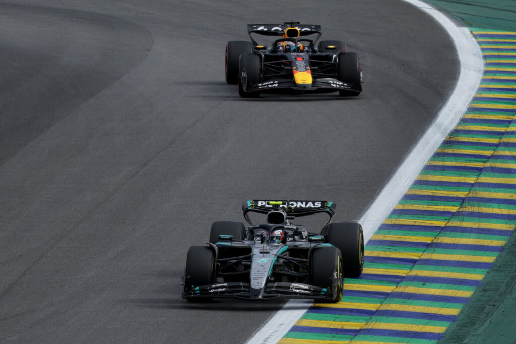 71圈的正賽於香港時間周一0100在José Carlos Pace賽道進行,路面溫度31°C,當地氣溫為18°C。賽道地區在比賽開始前曾下小雨,但所有車手都選擇乾地胎起步,頭10名車手中有Norris、Leclerc、Piastri、George Russell、Nico Hülkenberg使用C3中胎作賽,Antonelli、兩位VCARB車手、Ollie Bearman和Pierre Gasly則選用C4軟胎。