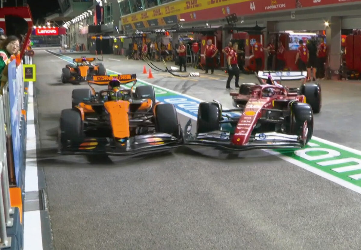 「不過負責安全釋放16號車的車隊人員錯判斷情況,並下達不清晰的指示,加上Leclerc無法看到Norris的賽車,結果兩部車在快車道上相撞。」