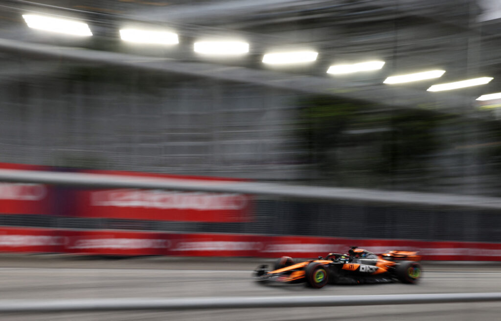由於新加坡濱海灣街道賽道的特性,加上顯著的賽道演變,所有車手都在首輪跑圈中不斷跑圈,從而累積節奏並逐圈改善時間。首輪跑圈取得第一名的是Norris,他跑出1:29.932的最快單圈,也是本週末首個進入1分29秒的單圈。Kimi Antonelli、Isack Hadjar、Verstappen、Hamilton和Charles Leclerc緊隨其後。