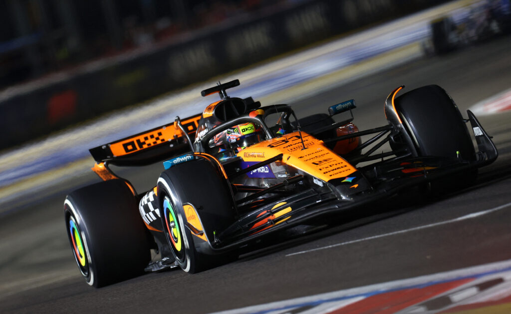 在新加坡站正賽起步時,排第5位的Norris於T2上升至第4位,並在T3內綫與Piastri平排,但Norris在T3彎心碰到前方Max Verstappen的車尾,Norris嘗試避開Verstappen的時候與外綫的Piastri出現輕微碰撞。