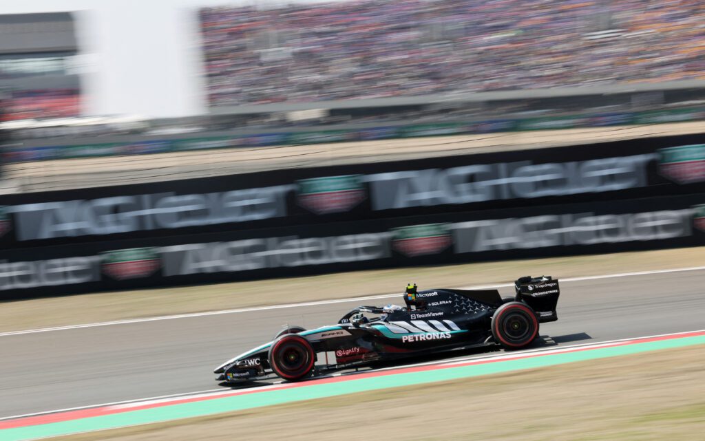 被問到是否預計明天正賽初段的戰況會跟澳洲站和今早的衝刺賽不同,Russell認為:「我希望是這樣,過去兩場比賽的開局都非常精彩。我們知道Ferrari的起步很快,而且他們排在第3和第4位,這是本賽季他們的第一次排在這個位置。Lewis(Hamilton)今早的起步表現表現出色,所以我相信比賽不會一帆風順。」