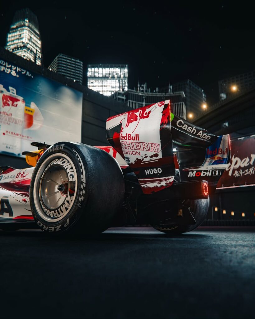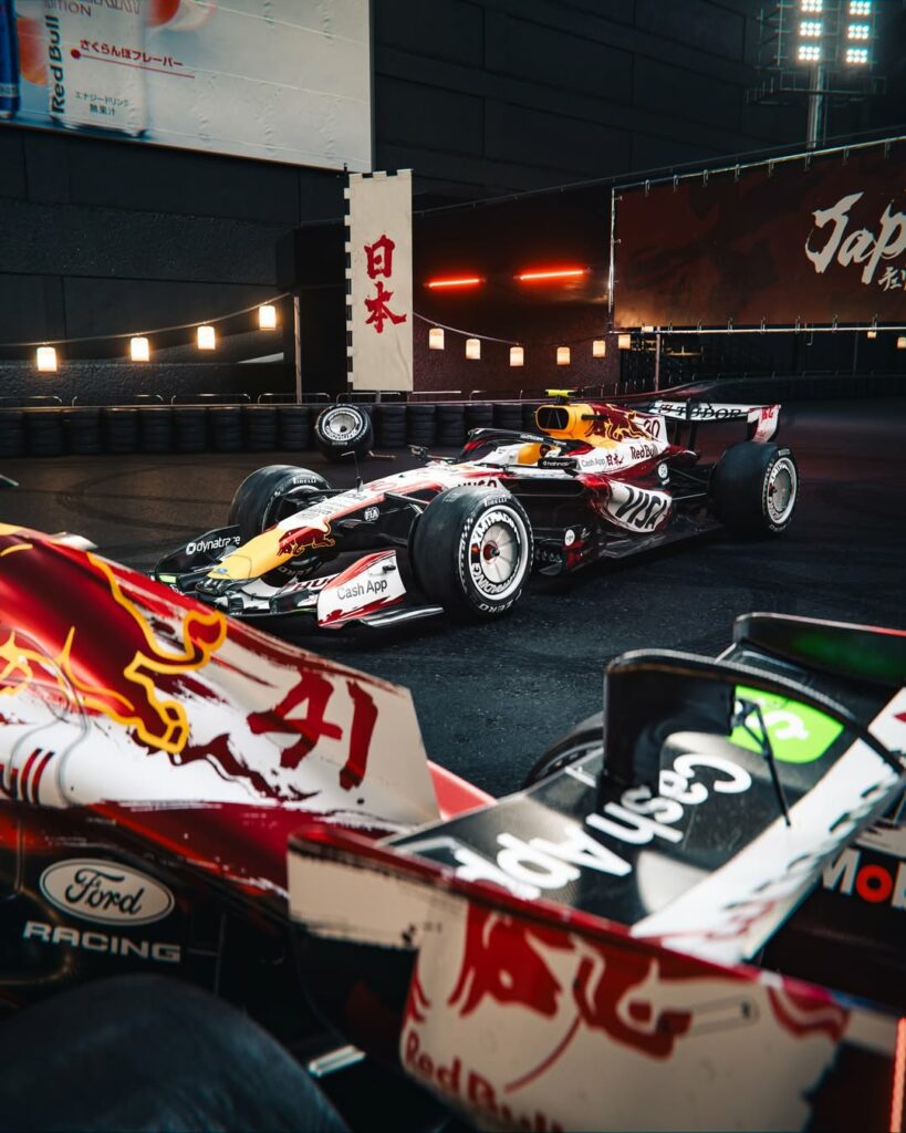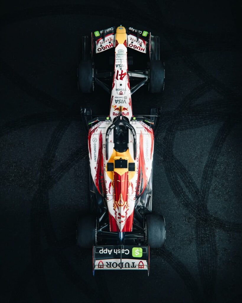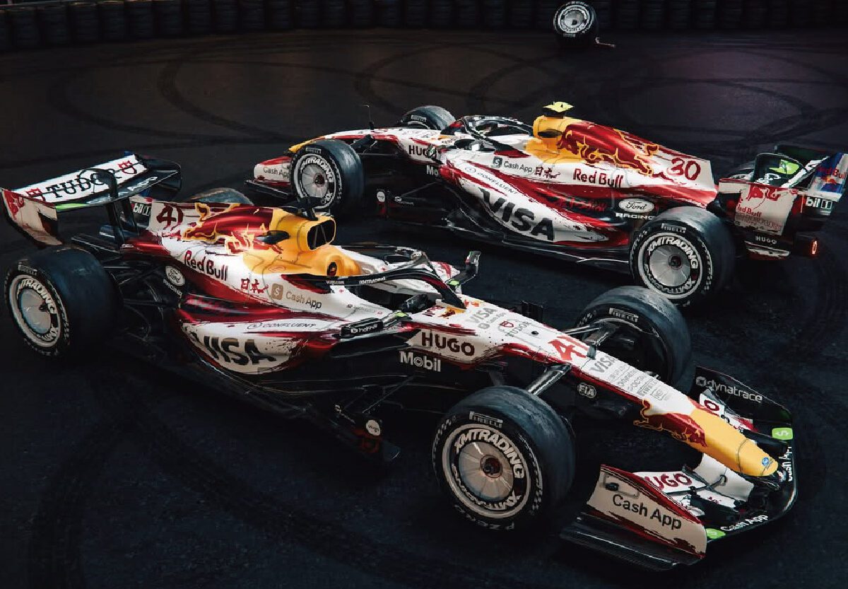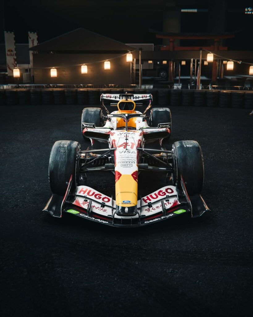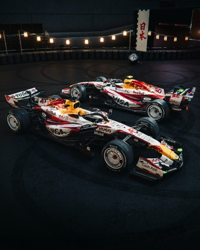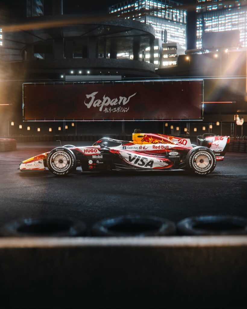 車身的紅色間條和車手號碼都融入了書法筆畫元素,頭翼也以日語書法表達Red Bull「Give You Wiiings」的標語。同時車手Liam Lawson和Arvid Lindblad以及車隊人員都會在日本站穿著融入相關元素的隊服。