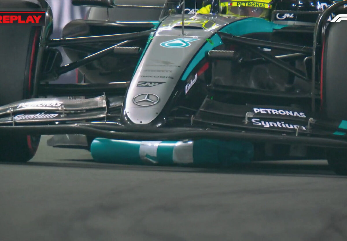 最後一次代表Mercedes出賽的Hamilton希望能以理想的成績結束12年的合作關係。不過非常不幸地,Kevin Magnussen在T14讓過慢車時,撞走彎心的一根塑膠製防撞杆,卻剛巧滾進Hamilton賽車車底,卡在賽車右側的Venturi Tunnel入口,導致他的W15賽車失去下壓力,無法在最後一圈改善時間,結果只取得第18名。而撞倒防撞杆的Magnussen晉級Q2,且沒有被裁判調查。