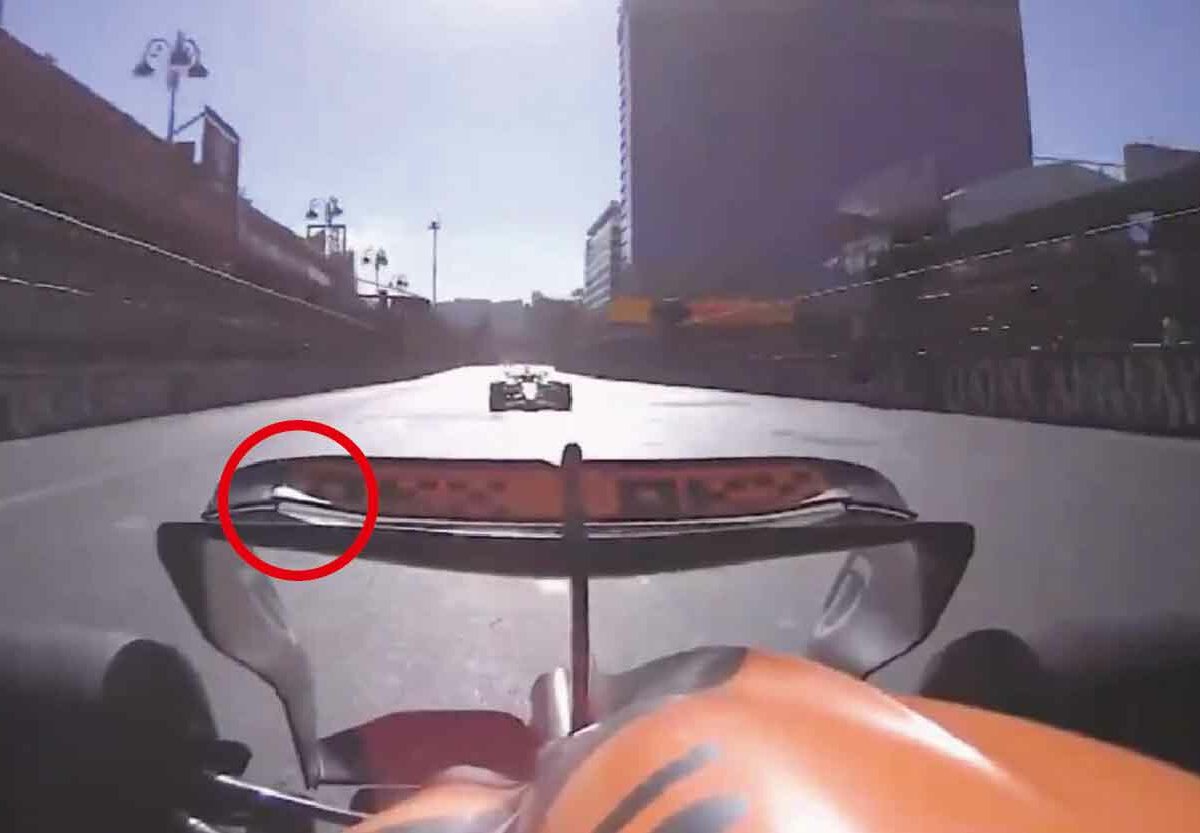 這次在阿塞拜疆大獎賽受到關注的是McLaren的尾翼,車載鏡頭拍攝到Oscar Piastri的上層尾翼在未開啓DRS時的變形幅度比較明顯,前緣位置會隨著速度的提升而向上傾斜,增加與尾翼本體之間的空隙,形成一個額外的DRS。雖然這種設計的效能跟真實的DRS比起來相差甚遠,但所增加的空隙可能會提升在非DRS路段的速度,還能改善胎耗。