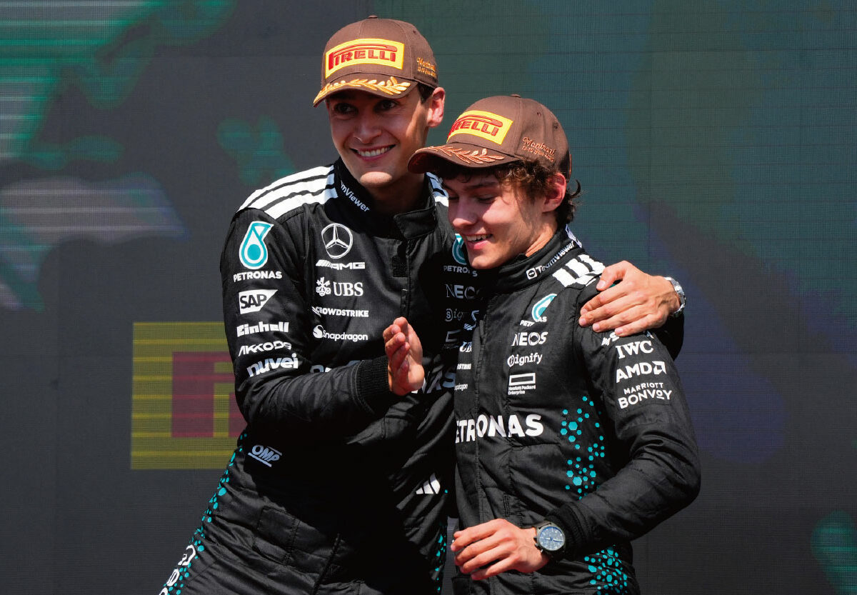 從Mercedes青訓出身的Russell在2022年由Williams晉升至Mercedes廠隊,至今奪得5場分站冠軍。今年Russell更是擔當起一號車手的角色,期間8次登上頒獎台,包括在加拿大站和新加坡站奪冠,目前暫居車手榜第4位。
